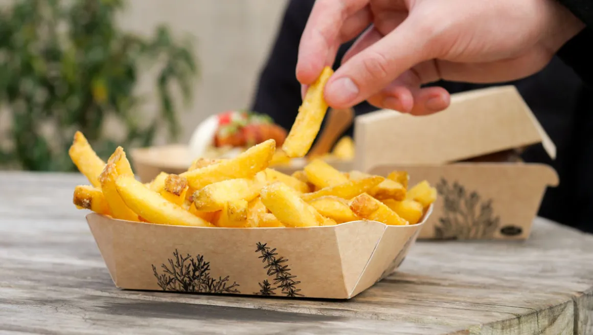 Alga ist ein vielseitiges Sortiment nachhaltiger Lebensmittelverpackungen der nächsten Generation, hergestellt aus Kraftkarton und einer natürlichen Algenbeschichtung ohne jegliche chemische Veränderung. Die robusten, reißfesten Produkte der Alga-Reihe eignen sich perfekt für heiße, kalte oder fettige Speisen und sind vielfältig einsetzbar für Salate, Beilagen, Burger oder Frittiertes.