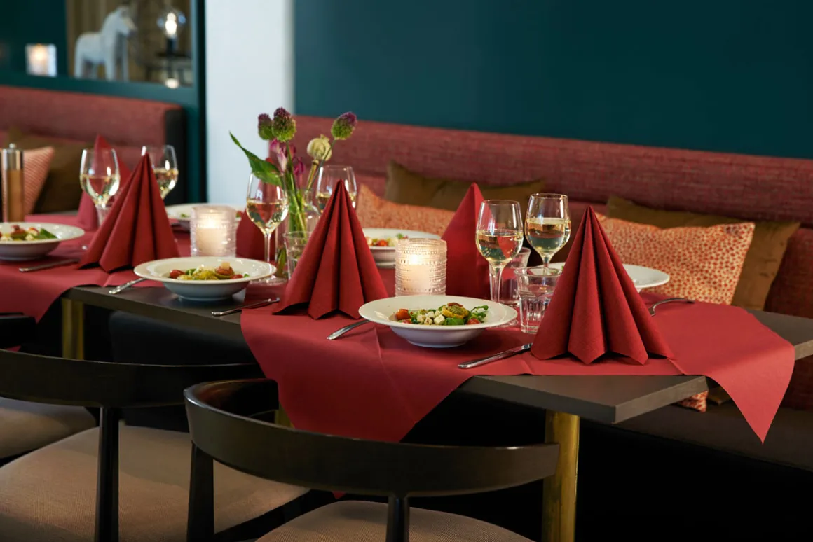 Unsere weichen und robusten Bio Dunicel®-Mitteldecken sind auf Nachhaltigkeit ausgelegt. Sie verkleinern Ihren ökologischen Fußabdruck und punkten gleichzeitig mit einem guten Drapierverhalten und einer wasserabweisenden Oberfläche. Mit unseren Bio Dunicel®-Mitteldecken, die aus vollständig nachwachsenden Materialien ohne fossile Brennstoffe hergestellt sind, sieht jeder Tisch auch bei der längsten Veranstaltung ansprechend aus.