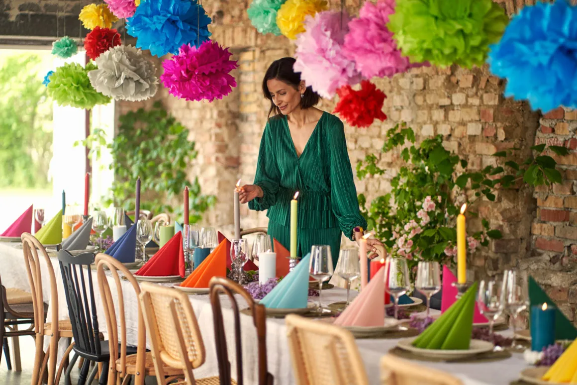 Immer perfekt zu falten. Zeitsparend und bequem – der perfekte Rahmen, wenn mehrere Serviervorgänge in kurzer Zeit erfolgen müssen. Kompakte Größe. Herrlich weich, für farbenfrohe Momente. Sehr saugfähig, hält einem mehrgängigen Menü stand. Optimales Preis-Leistungs-Verhältnis für legere Anlässe. Kompostierbar.