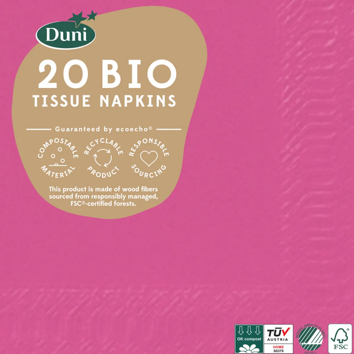 Praktische und handliche Servietten. Die funktionale Wahl. Geeignet für Fingerfood, Kaffee und Cocktails. Je mehr Lagen, desto strapazierfähiger. Kompostierbar.