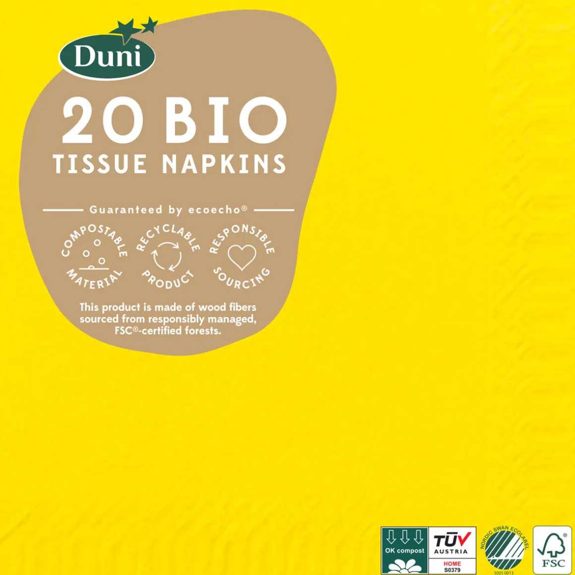 Praktische und handliche Servietten. Die funktionale Wahl. Geeignet für Fingerfood, Kaffee und Cocktails. Je mehr Lagen, desto strapazierfähiger. Kompostierbar.