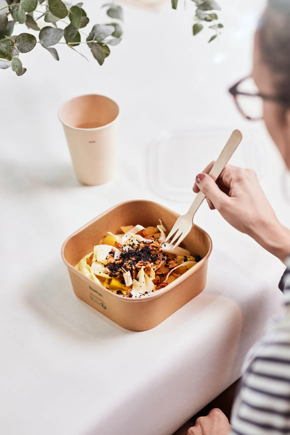 Unsere Breeze-Becher bestehen aus nachwachsenden Rohstoffen – Zuckerrohr und Kartonfaser – und geben so dem, was sonst zu Abfall geworden wäre, neues Leben. Die Becher sind innen und außen mit einem pflanzlichen PLA-Kunststoff beschichtet und daher robust und langlebig. Passende Deckel dazu sind aus Zuckerrohrfaser, pflanzenbasiertem CPLA-Biokunststoff oder recyceltem PET erhältlich.