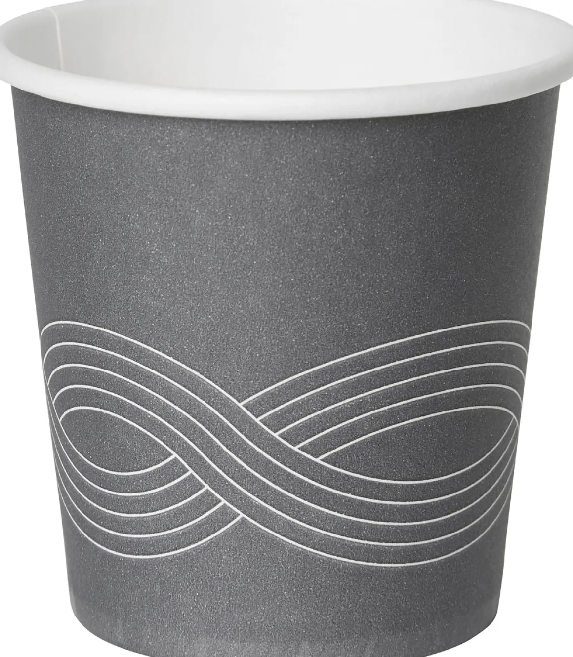 Unsere Circuit-Papierbecher eignen sich perfekt für Kaffee oder Tee. Sie sind mit einem minimalistischen Design bedruckt, das von geometrischen, fließenden Mustern inspiriert ist. Die neutrale graue Farbe fügt sich perfekt in jedes Umfeld ein.