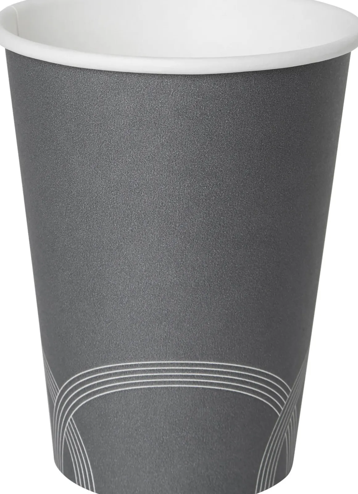 Unsere Circuit-Papierbecher eignen sich perfekt für Kaffee oder Tee. Sie sind mit einem minimalistischen Design bedruckt, das von geometrischen, fließenden Mustern inspiriert ist. Die neutrale graue Farbe fügt sich perfekt in jedes Umfeld ein.
