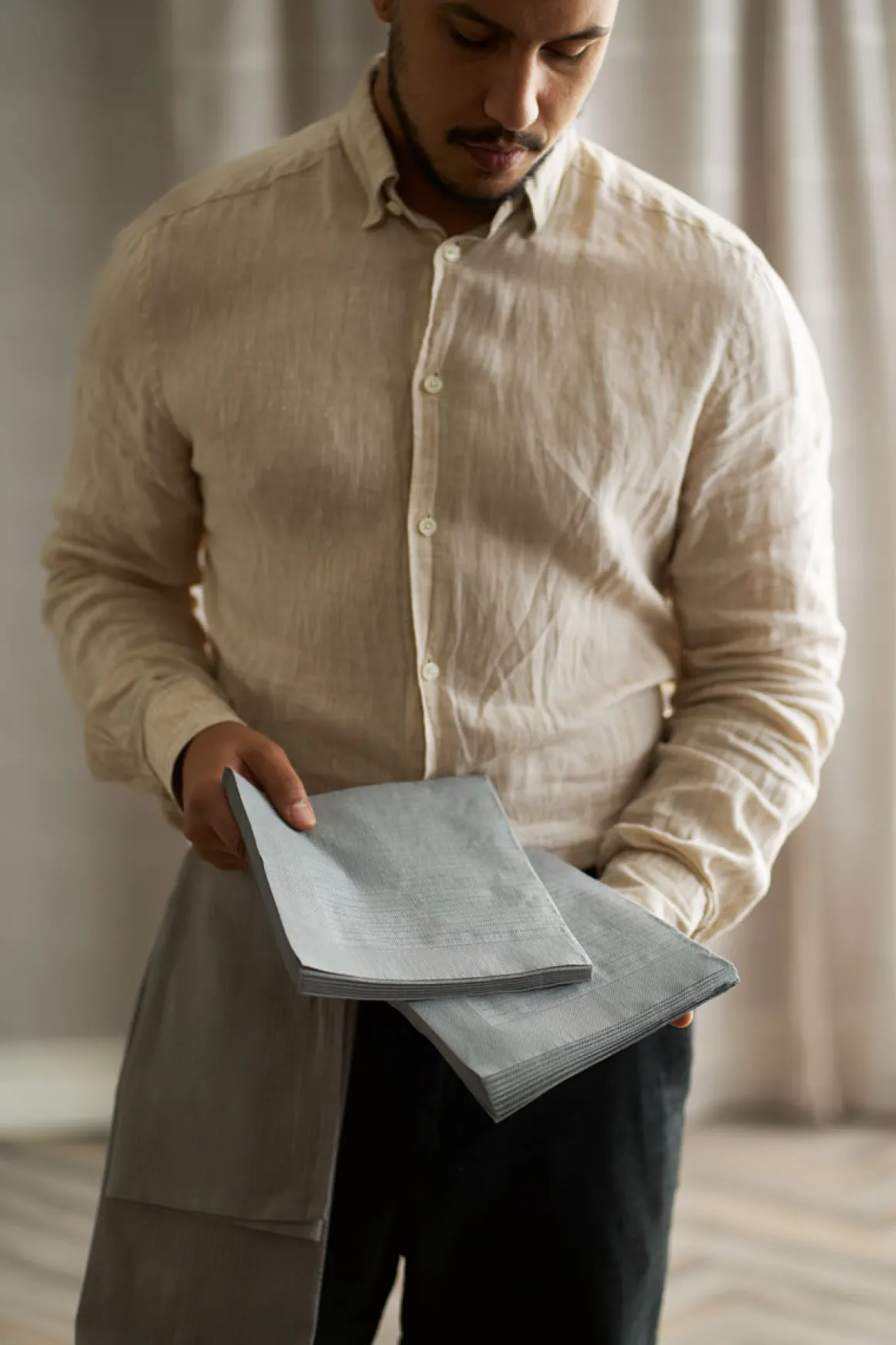 Großzügig in Format und Stimmung. Ein maximales Erlebnis für Gäste – sowie in Sachen Hygiene und Praktikabilität. Premium für jeden Tag. 4-lagige Zelltuch-Servietten mit geprägter Oberfläche sind ideal zu falten. Passt zu alltäglichen und festlichen Anlässen. Kompostierbar.