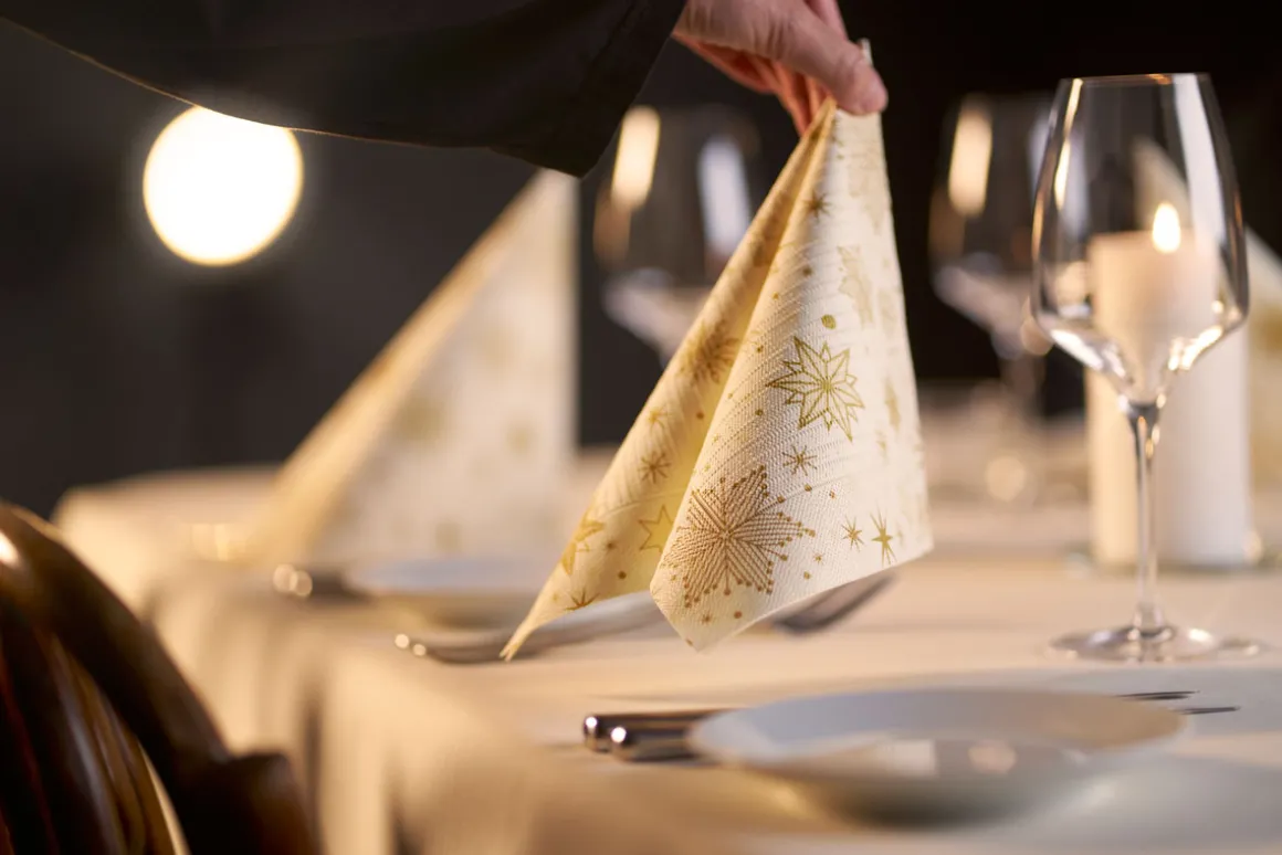 Großzügig in Format und Stimmung. Ein maximales Erlebnis für Gäste – sowie in Sachen Hygiene und Praktikabilität. Premium für jeden Tag. 4-lagige Zelltuch-Servietten mit geprägter Oberfläche sind ideal zu falten. Passt zu alltäglichen und festlichen Anlässen.