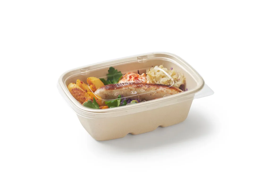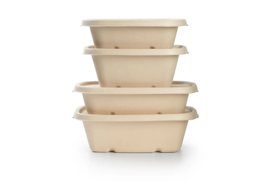 • Boxen und Zuckerrohrfaser-Deckel aus nachwachsenden Rohstoffen