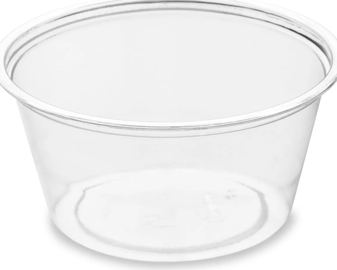 Unsere Dressing- und Saucenbecher sind in mehreren praktischen und Größen erhältlich und passen perfekt zu all unseren nachhaltigen Take-away-Lösungen. Diese kristallklaren transparenten Becher bestehen zu 100 % aus recyceltem PET (RPET).