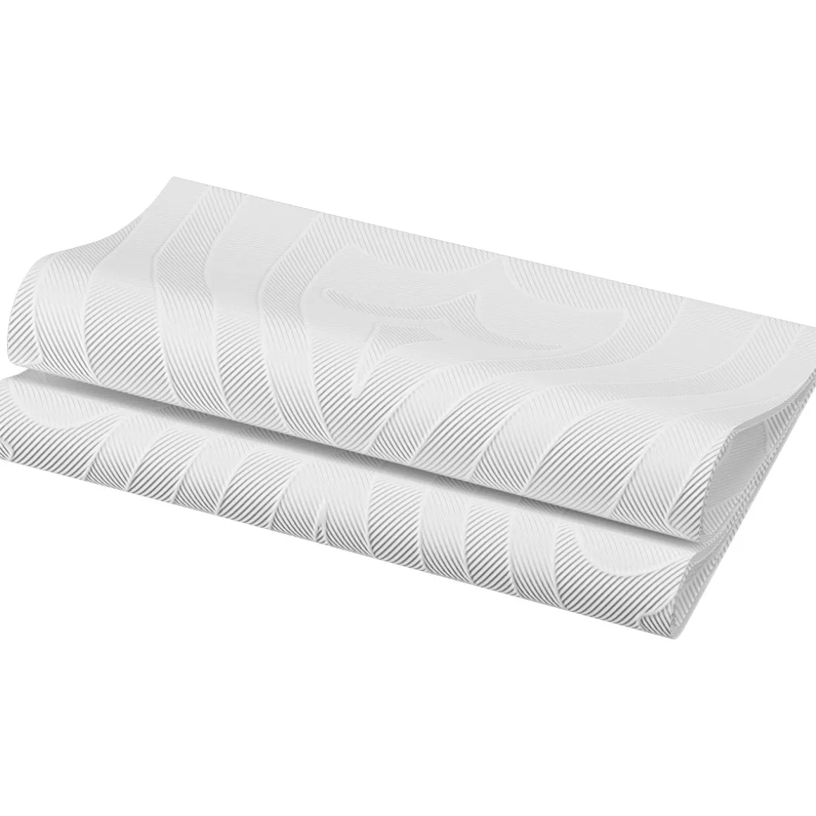 Großzügig in Format und Stimmung. Ein maximales Erlebnis für Gäste – sowie in Sachen Hygiene und Praktikabilität. Elegant. Mit einzigartiger Struktur. Geprägte Struktur und eleganter Schimmer, perfekt für feierliche Anlässe. Schwer und saugfähig, hält mehrgängigen Menüs stand.