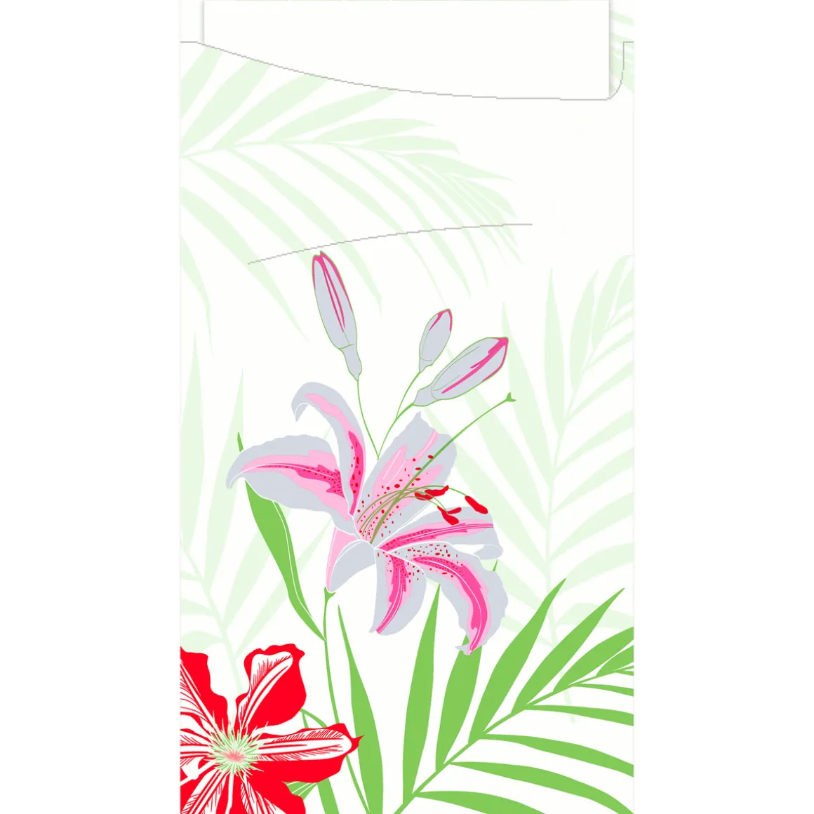 Hygienische und praktische Serviettentaschen. Eine praktische und simple Lösung, um das Besteck- und Servietten-Handling zu vereinfachen. Schnell und einfach vorbereitet und eingedeckt – auch in Stoßzeiten. Tolle Lösung für den Innen- und Außenbereich. In vielen verschiedenen Farben erhältlich. Einschließlich einer herrlich weichen, kompostierbaren Dunisoft-Serviette (40 × 32 cm).