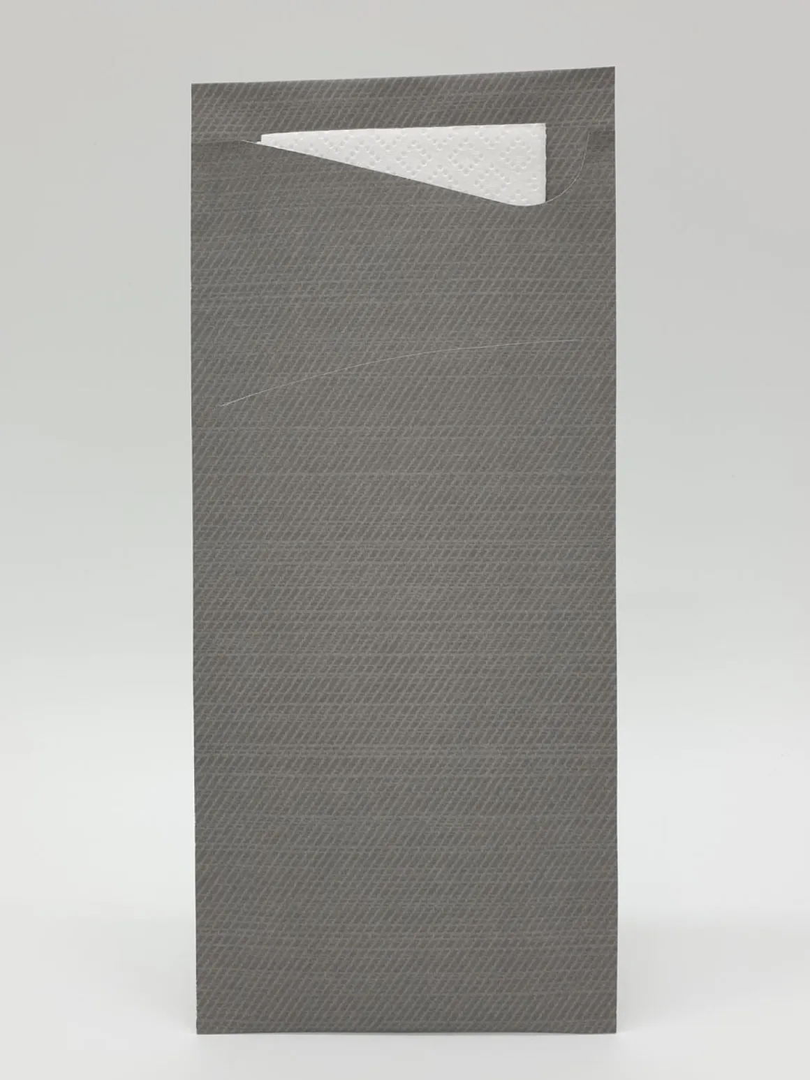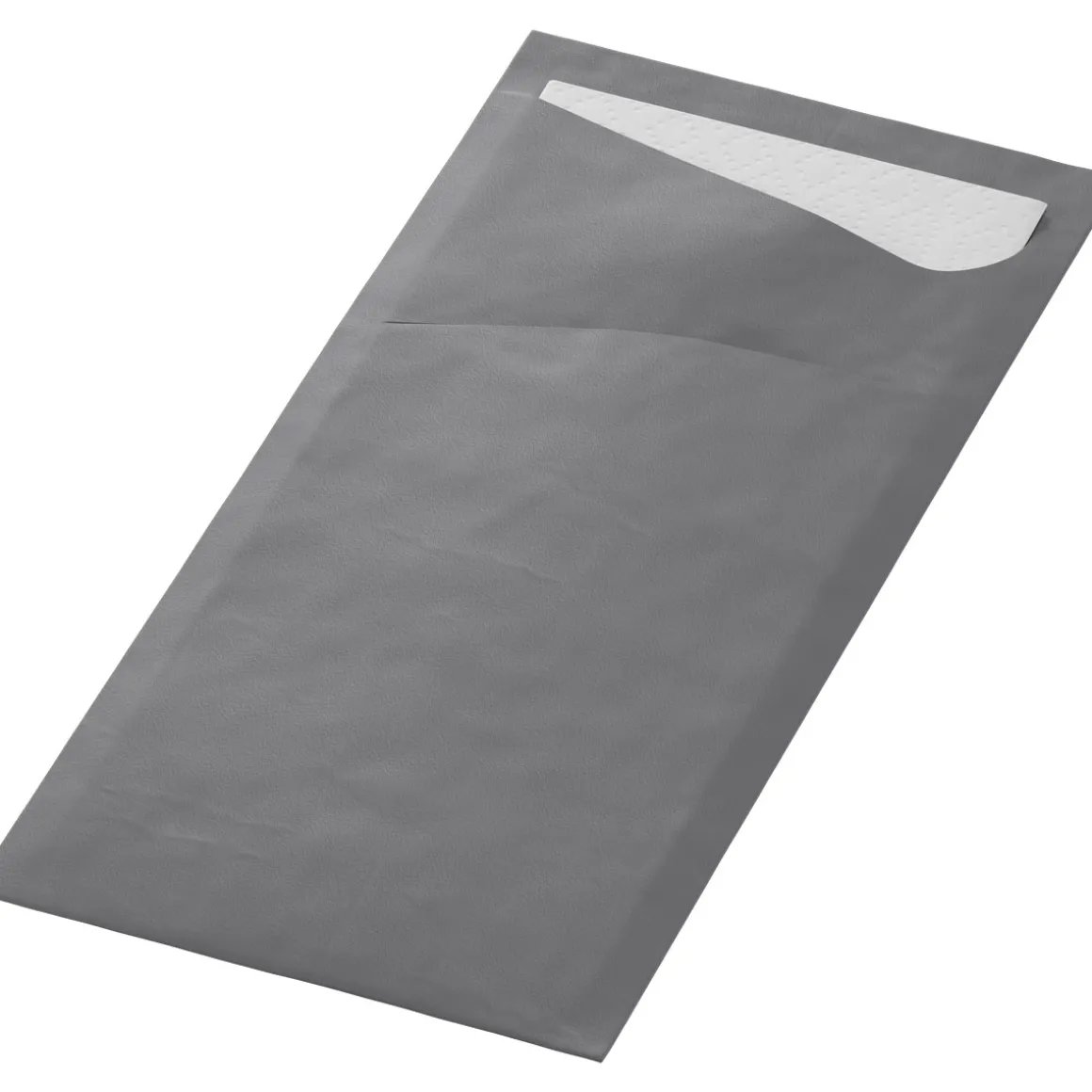 Hygienische und praktische Serviettentaschen. Eine praktische und simple Lösung, um das Besteck- und Servietten-Handling zu vereinfachen. Schnell und einfach vorbereitet und eingedeckt – auch in Stoßzeiten. Tolle Lösung für den Innen- und Außenbereich. In vielen Ton-in-Ton-Farben erhältlich. Enthält eine 2-lagige, kompostierbare Zelltuch-Serviette (33 × 33 cm).