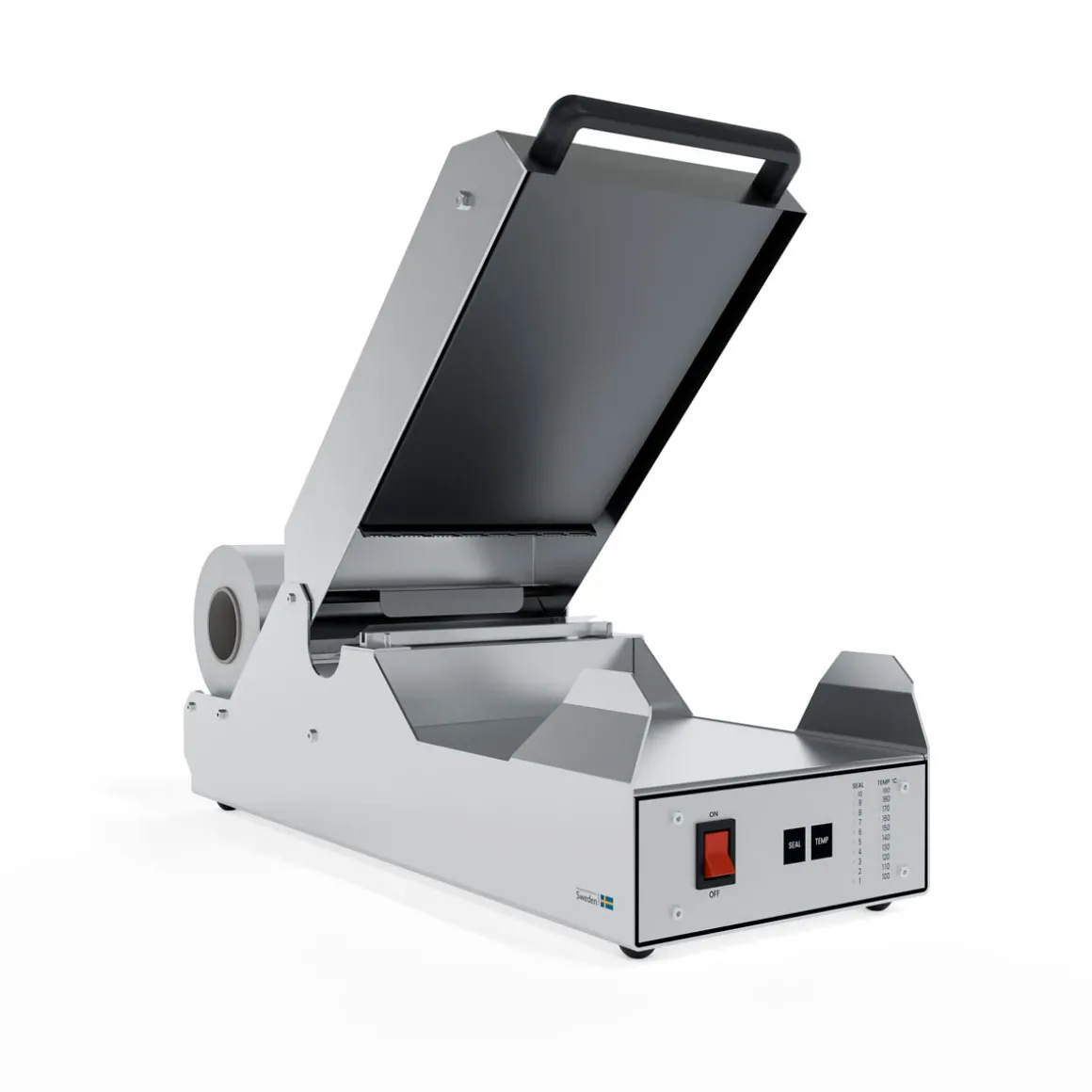 Die manuellen Duniform®-Siegelmaschinen bieten Restaurants, Cafés und Lebensmitteleinzelhändlern die perfekte Einsteiger-Siegelmaschinen zum einfachen und schnellen Versiegeln von Schalen. Einfach die zu versiegelnde Folie einlegen, Folie über die Schale ziehen und den Deckel schließen, um den Siegelvorgang zu starten. Die Kassetten können schnell und einfach gewechselt werden, was eine große Flexibilität bei der Auswahl Ihrer Schalen ermöglicht. Die Maschinen sind aus Edelstahl gefertigt und damit robust und langlebig.