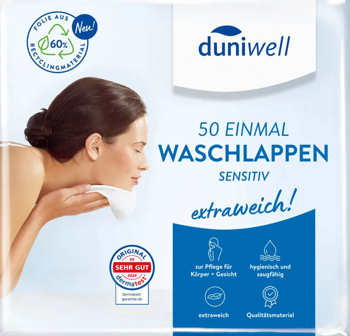 DUNIWELL Einmal Waschlappen sind ideal für die tägliche Hautpflege und geben ein rundum gutes Hautgefühl! Das weiche, extrafeste Qualitätsmaterial reinigt besonders hautschonend und gründlich. Ob zu Hause, beim Sport oder unterwegs. Ist sehr hygienisch, praktisch und überall einsetzbar.