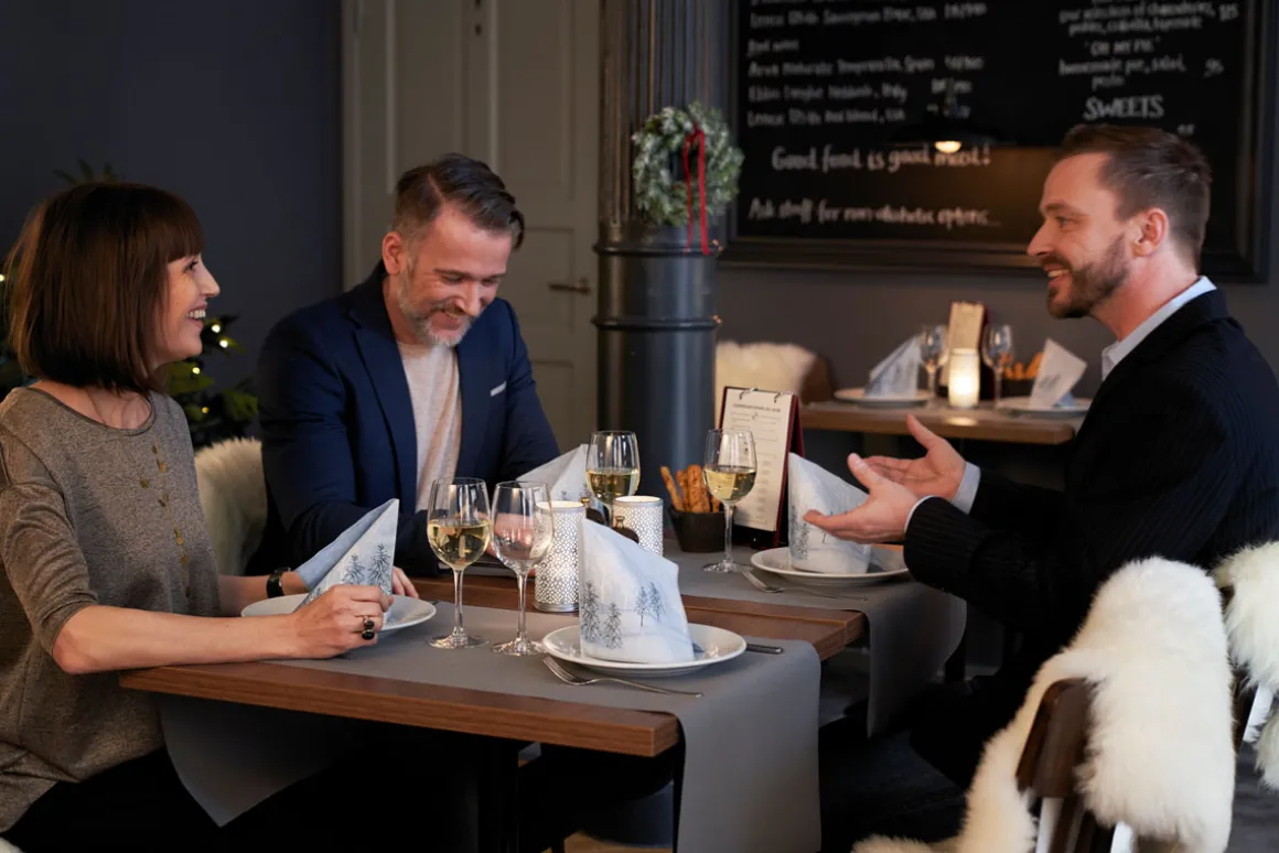 • Opulent texturiert und wasserabweisend, überdauert das ganze Essen