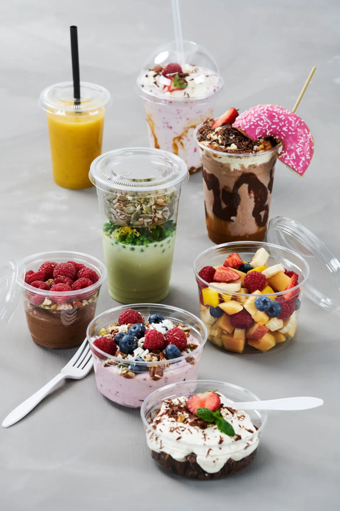 Unsere Crystal Gläser schonen die Umwelt, denn sie schließen Recyclingkreisläufe. Sie bestehen zu 100 % aus post-consumer recyceltem PET (RPET) und können nach Gebrauch dem Gebrauch problemlos wieder recycelt werden. Noch besser: Sie sind kristallklar und setzen Getränke, Snacks, Desserts & Co. perfekt und appetitlich in Szene. Es gibt sie in vielen verschiedenen Größen, die auch mit praktischen Einsätzen versehen und mit verschiedenen Deckelvarianten verschlossen werden können. Darüber hinaus können sie mit der Duniform® DF5-Maschine auslaufsicher versiegelt werden, um die Hygiene zu maximieren und die Haltbarkeitsdauer zu verlängern.