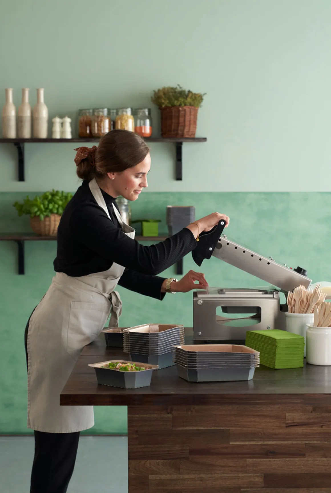 Unsere Forum-Schalen weisen den Weg in die Zukunft der umweltbewussten, versiegelbaren Take-away-Lösungen. Sie bestehen zu 85 % aus FSC™-zertifiziertem Karton und besitzen eine dünne, entfernbare PE/EVOH-Beschichtung. Durch dieses innovative Design sind die Schalen auch MAP-geeignet, wodurch die Haltbarkeit von Speisen verlängert wird. Das Recycling nach dem Gebrauch ist ganz einfach: Die PE-Beschichtung von der Karton-Schale abziehen und den jeweils richtigen Recyclingströme zuführen.
