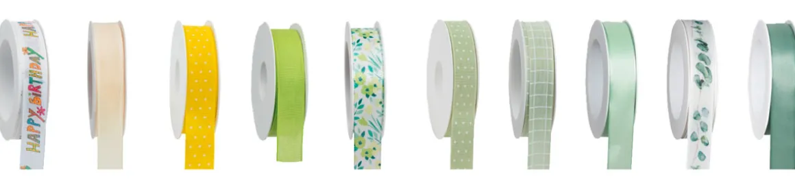 Unsere Bänder sind in verschiedenen Farben und Materialien erhältlich – perfekt, um Ihre Geschenkverpackung aufzupeppen und besonders festlich zu gestalten.