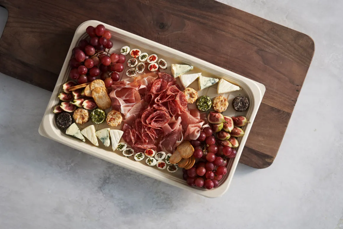 Die Essential-Platte mit passendem rPET-Deckel ist die perfekte nachhaltige Catering-Lösung. Die Platte besteht aus kompostierbarer Bagasse (Zuckerrohr), der kristallklare Deckel aus 100 % recyceltem PET (RPET). Dank des sicher schließenden Deckels und der leichten Stapelbarkeit ist die Lösung ein Garant für einfaches Handling und sicheren Transport. Unsere Speiseverpackungen – wie all unsere Teller und Schalen – werden ohne Zusatz von PFAS hergestellt.