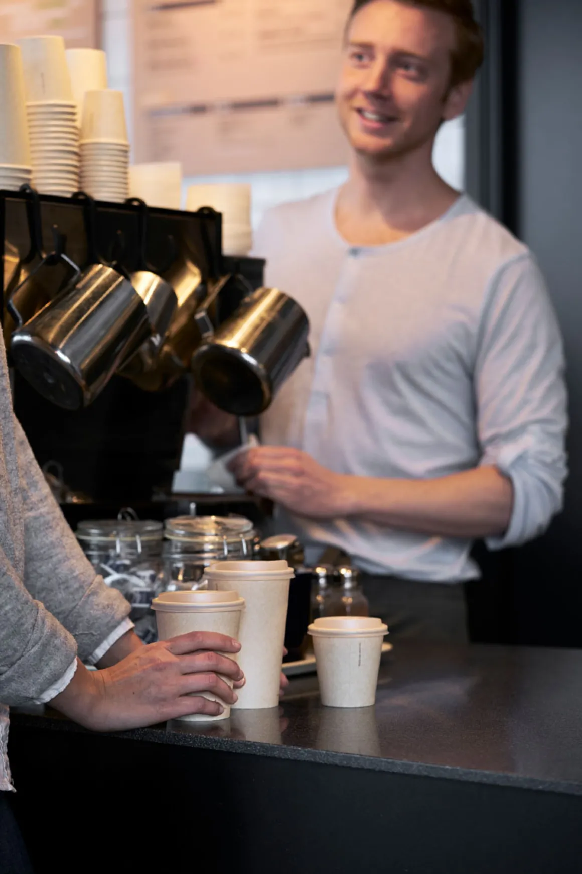 Unsere Sweet-Becher wurden mit Blick auf die Umwelt entwickelt und zeigen, wie nachhaltig ein Becher sein kann. Sie bestehen aus einem Fasergemisch auf Zuckerrohrbasis – einem Material, das sonst als Abfall gelten würde – und erhalten so ein neues Leben. Die Becher sind mit einer wasserbasierten Beschichtung versehen und lassen sich mit passenden Deckeln aus Zuckerrohrfasern oder Papier kombinieren.
