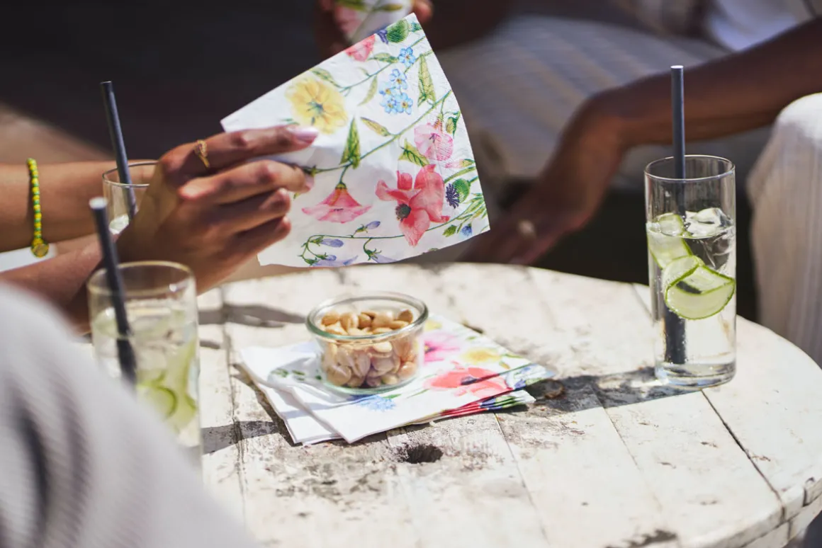 Unsere strapazierfähigen und handlichen 3-lagigen Zelltuch-Servietten gibt es in mehreren lebendigen Designs. Sie eignen sich besonders gut für Drinks und Fingerfood in zwangloser Atmosphäre und ermöglichen eine schnelle Reinigung, wenn ein Getränk verschüttet wird.