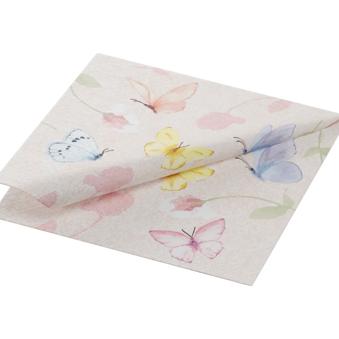 Unsere strapazierfähigen und handlichen 3-lagigen Zelltuch-Servietten gibt es in mehreren lebendigen Designs. Sie eignen sich besonders gut für Drinks und Fingerfood in zwangloser Atmosphäre und ermöglichen eine schnelle Reinigung, wenn ein Getränk verschüttet wird.
