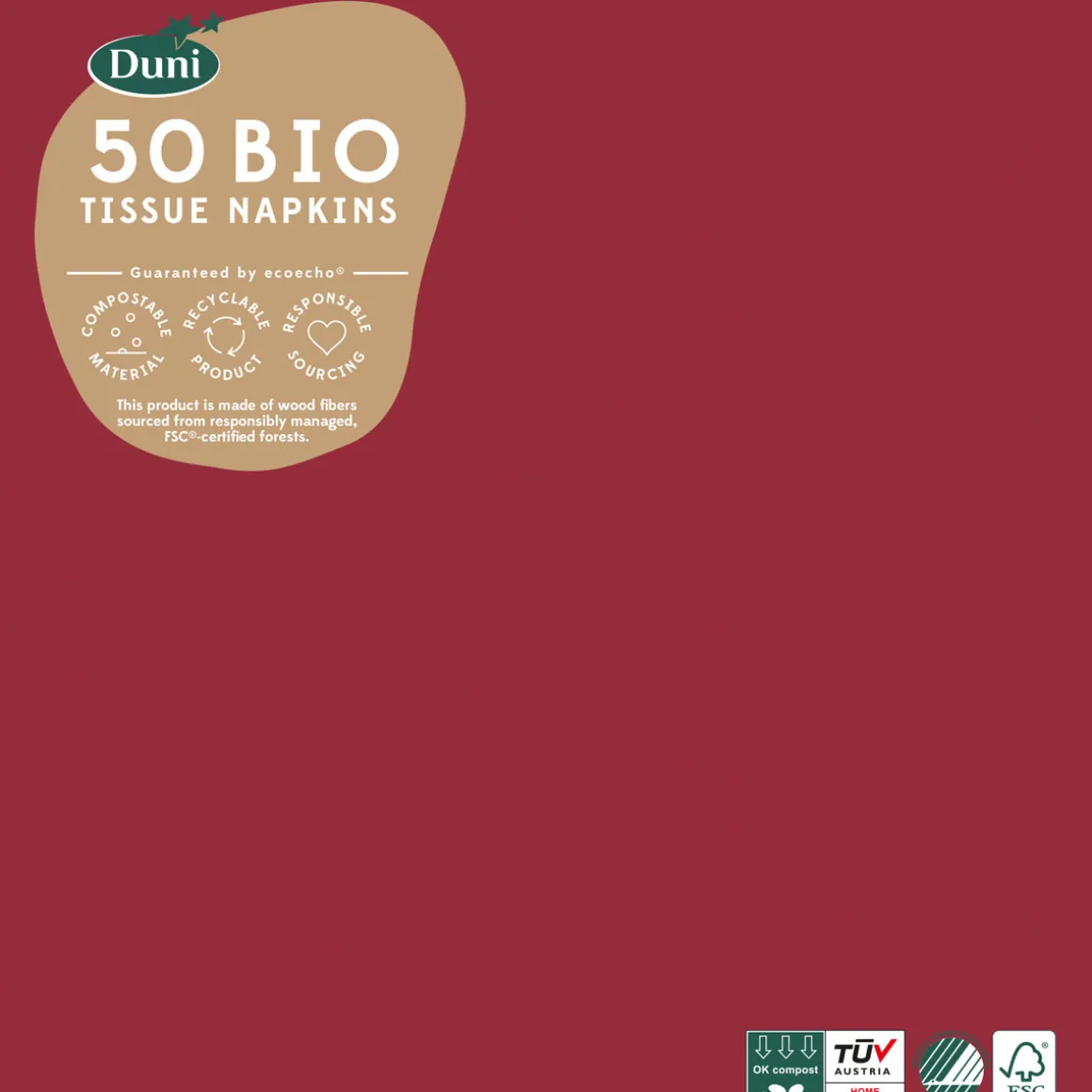 Praktische Serviettengröße für lockere Anlässe. Die funktionale Wahl. Geeignet für ein lockeres Frühstück, Mittagessen und Snackpausen. Je mehr Lagen, desto strapazierfähiger. Kompostierbar.