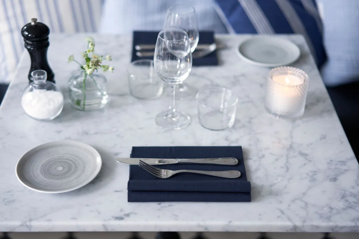 Großzügig in Format und Stimmung. Ein maximales Erlebnis für Gäste – sowie in Sachen Hygiene und Praktikabilität. In Optik und Haptik nicht von Stoff zu unterscheiden. Elegant geprägt, weich, dick und perfekt zu falten. Kompostierbar.