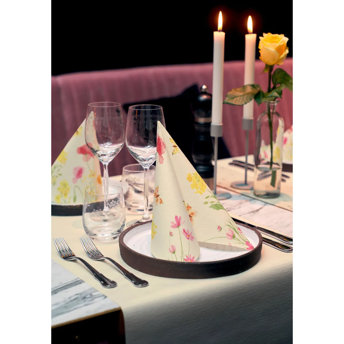 Großzügig in Format und Stimmung. Ein maximales Erlebnis für Gäste – sowie in Sachen Hygiene und Praktikabilität. Herrlich weich, für farbenfrohe Momente. Sehr saugfähig, hält einem mehrgängigen Menü stand. Optimales Preis-Leistungs-Verhältnis für legere Anlässe.