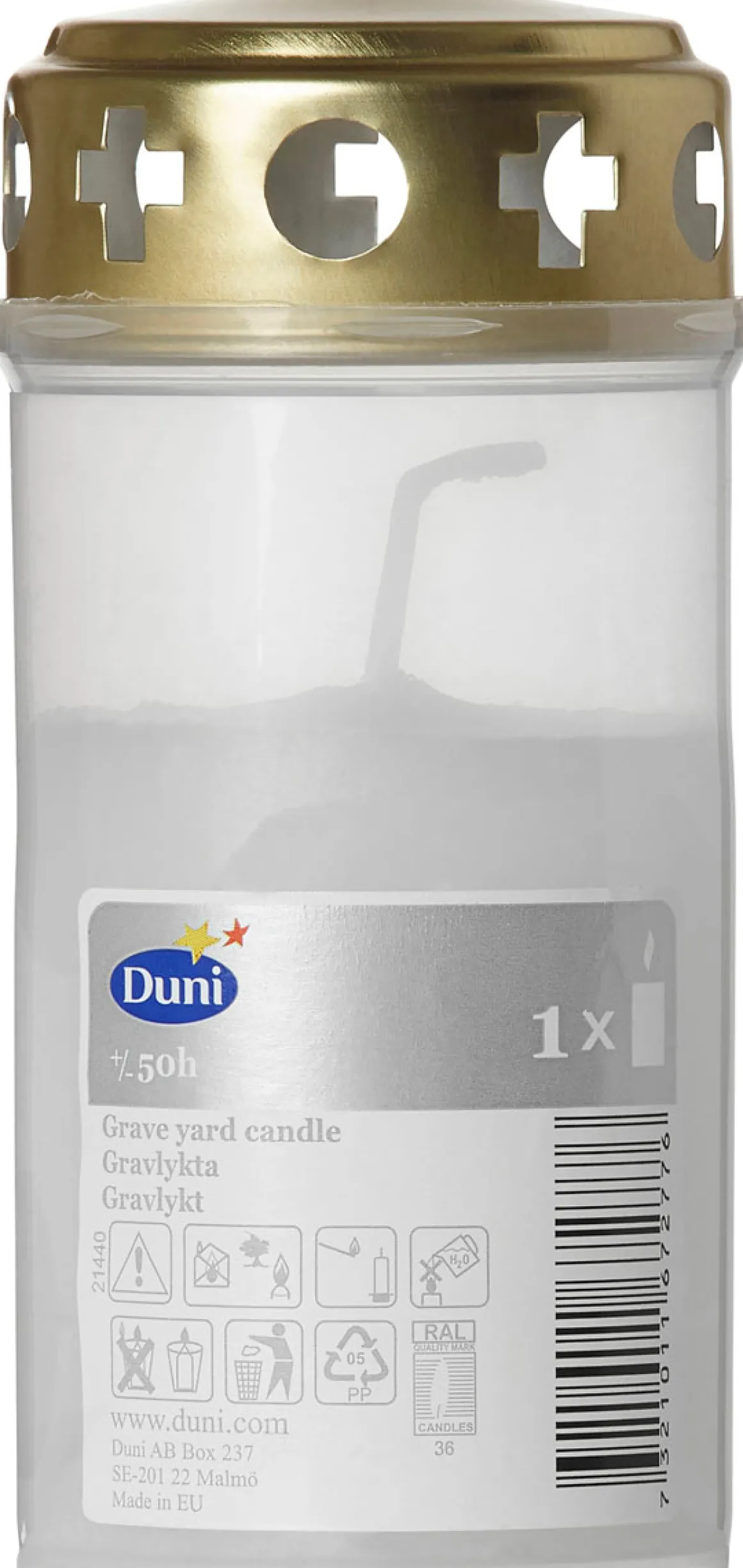 Mit unseren geschmackvollen Grablichtern können Sie Ihrer Lieben gedenken. Diese Kerzen sind in einen einfachen und strapazierfähigen Halter aus mattem Kunststoff gegossen und beleuchten Gräber und andere Gedenkstätten im Freien mit einem warmen Licht.