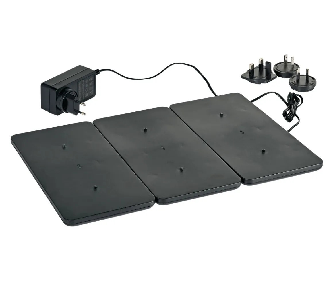 Mit Ladestationen lassen sich mehrere LED-Sets bequem und platzsparend laden. Ladestationen enthalten ein zusätzliches Ladekabel, wodurch der Bedarf an Ladekabeln insgesamt von vier auf nur eins oder zwei reduziert wird. LED-Sets sind separat erhältlich.