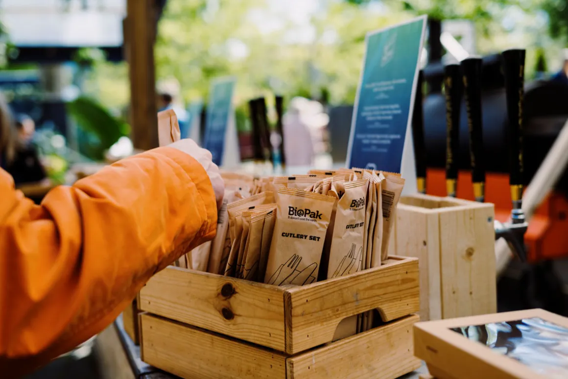 Für eine hygienisch sichere und ideale Bestecklösung für unterwegs bieten wir ein vielseitiges Sortiment an Holzbestecken in verschiedenen Ausführungen an, darunter auch Sets mit FSC™-zertifizierten Zelltuchservietten und Salz- und Pfeffertütchen, die allesamt in FSC™-zertifiziertem Papier verpackt sind. Das Besteck besteht aus FSC™-zertifiziertem Birkenholz und ist für ein angenehmes Mundgefühl mit einer dünnen Schicht Carnaubawachs beschichtet, das vegan und geschmacksneutral ist und umweltschonend geerntet wird.