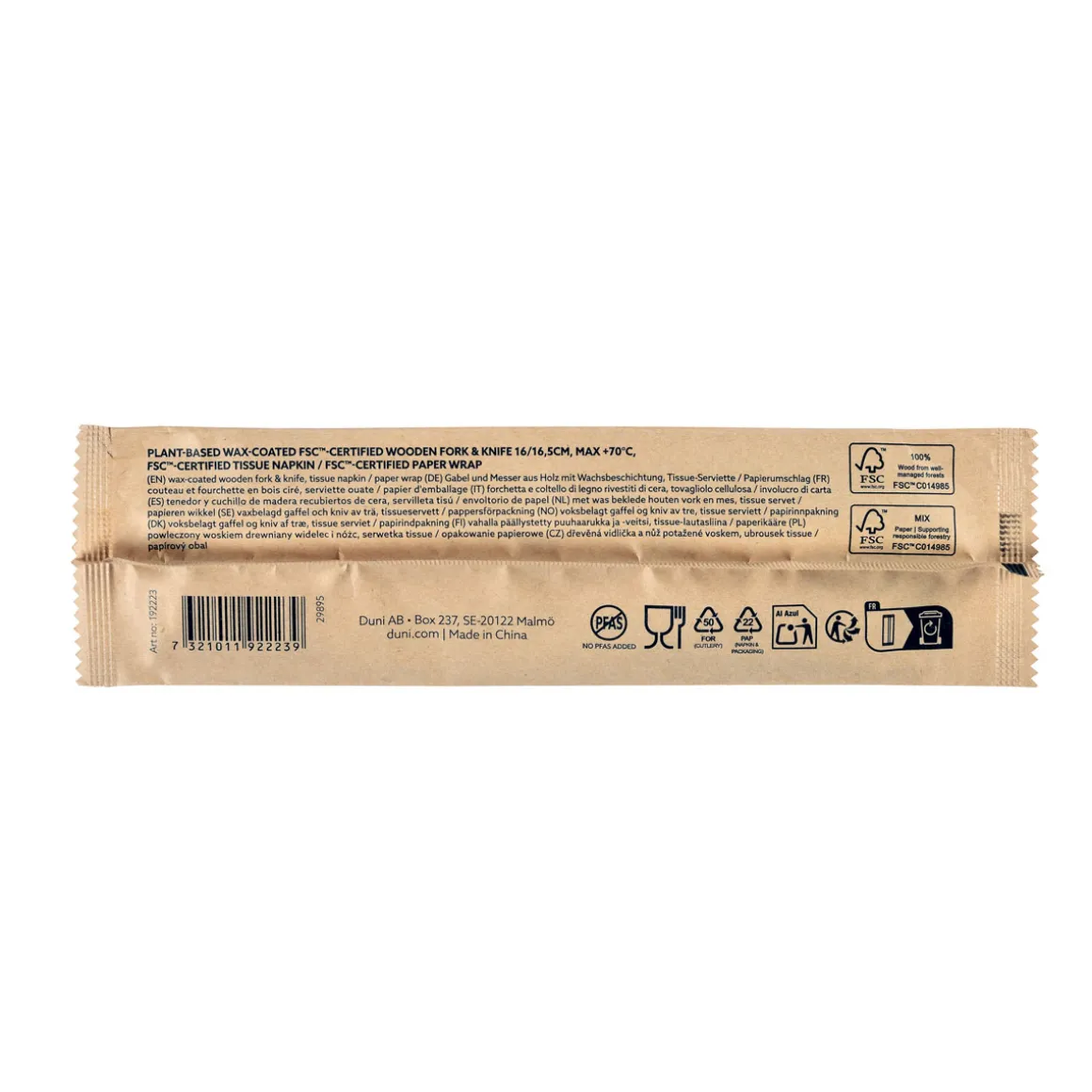 Für eine hygienisch sichere und ideale Bestecklösung für unterwegs bieten wir ein vielseitiges Sortiment an Holzbestecken in verschiedenen Ausführungen an, darunter auch Sets mit FSC™-zertifizierten Zelltuchservietten und Salz- und Pfeffertütchen, die allesamt in FSC™-zertifiziertem Papier verpackt sind. Das Besteck besteht aus FSC™-zertifiziertem Birkenholz und ist für ein angenehmes Mundgefühl mit einer dünnen Schicht Carnaubawachs beschichtet, das vegan und geschmacksneutral ist und umweltschonend geerntet wird.