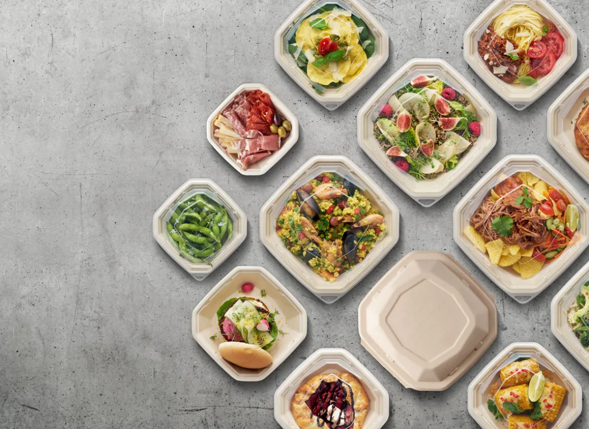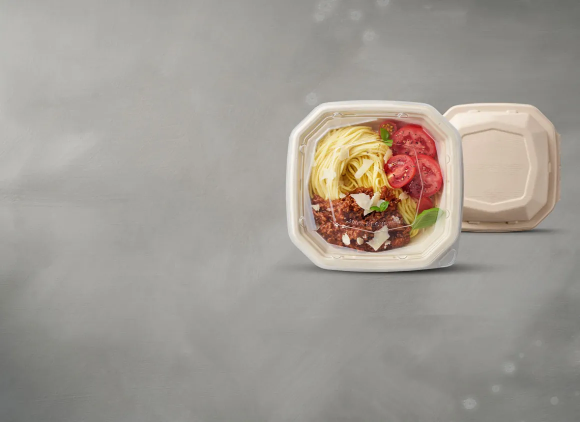Unsere Octabagasse-Schalen und -Deckel werden aus erneuerbaren und kompostierbaren Zuckerrohrfasern (Bagasse) hergestellt und sind der absolute Favorit bei unseren Kunden. Sie sind ideal, wenn Sie formschönes Design, perfekte Präsentation und Komfort mit herausragender Funktionalität kombinieren möchten. Neben super-sicher schließenden Deckeln aus Zuckerrohrfasern stehen optional transparente Deckel aus 100 % post-consumer recyceltem PET (RPET) zur Verfügung, die nach Gebrauch problemlos wieder recycelt werden können. Unsere Speiseverpackungen – wie all unsere Boxen und Schalen – werden ohne Zusatz von PFAS hergestellt.