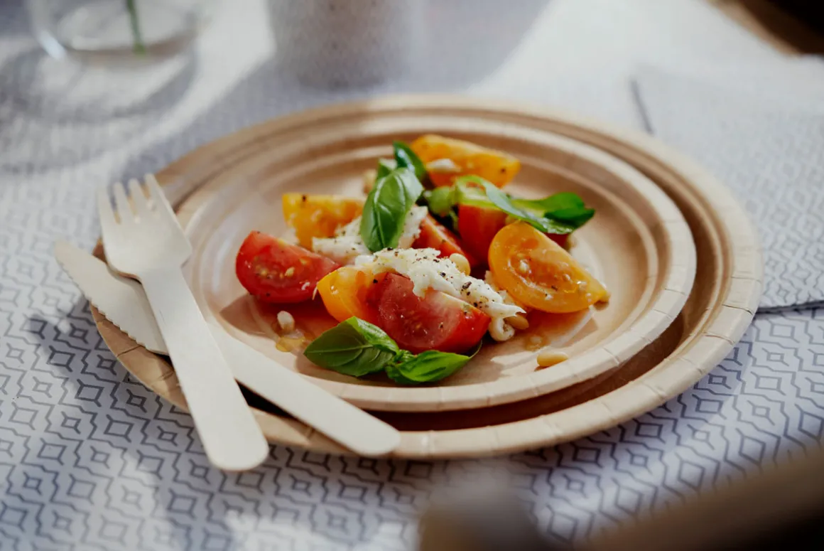 Kompakt verpackte, beschichtete Pappteller und -schalen, perfekt für das Verkaufsregal.