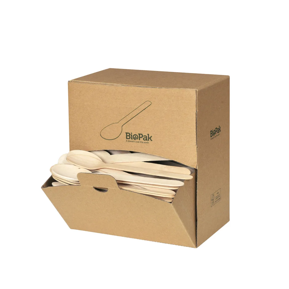 Unsere Besteck-Spendernoxen sind eine ultra-praktische Lösung für Theken, Pausenräume in Büros und Restaurants. Die Spender sind aus stabiler Wellpappe und enthalten eine unserer beliebtesten Besteckserien: die Petit-Serie. Das Besteck besteht aus FSC™-zertifiziertem Birkenholz und ist für ein angenehmes Mundgefühl mit einer dünnen Schicht Carnaubawachs beschichtet, das vegan und geschmacksneutral ist und umweltschonend geerntet wird.