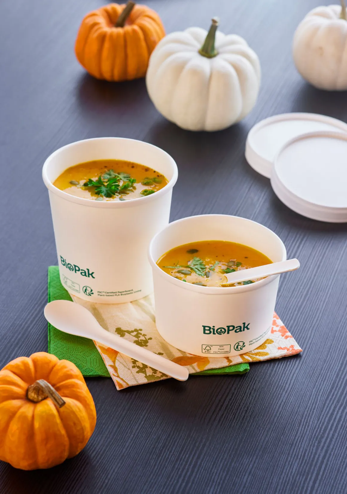 Die Natur ist vielfältig. Diese Vielfalt findet sich auch in der neuen Ronda-Serie wieder, die in vielen Formen und Größen erhältlich ist. Das wahrscheinlich vielseitigste nachhaltige Bowl-Angebot auf dem Markt. Die Bowls und Deckel bestehen aus FSC™-zertifizierter Pappe mit einer pflanzlichen PLA-Biokunststoffbeschichtung. Sie sind industriell kompostierbar und können ohne grobe Verschmutzungen nach dem Gebrauch als Papier recycelt werden. Die Bowls sind für heiße und kalte Speisen geeignet, sie sind fett- und wasserbeständig sowie mikrowellengeeignet. Optional sind transparente Deckel aus 100 % aus post-consumer recyceltem PET (RPET) erhältlich, die nach dem Gebrauch einfach wieder recycelt werden können.
